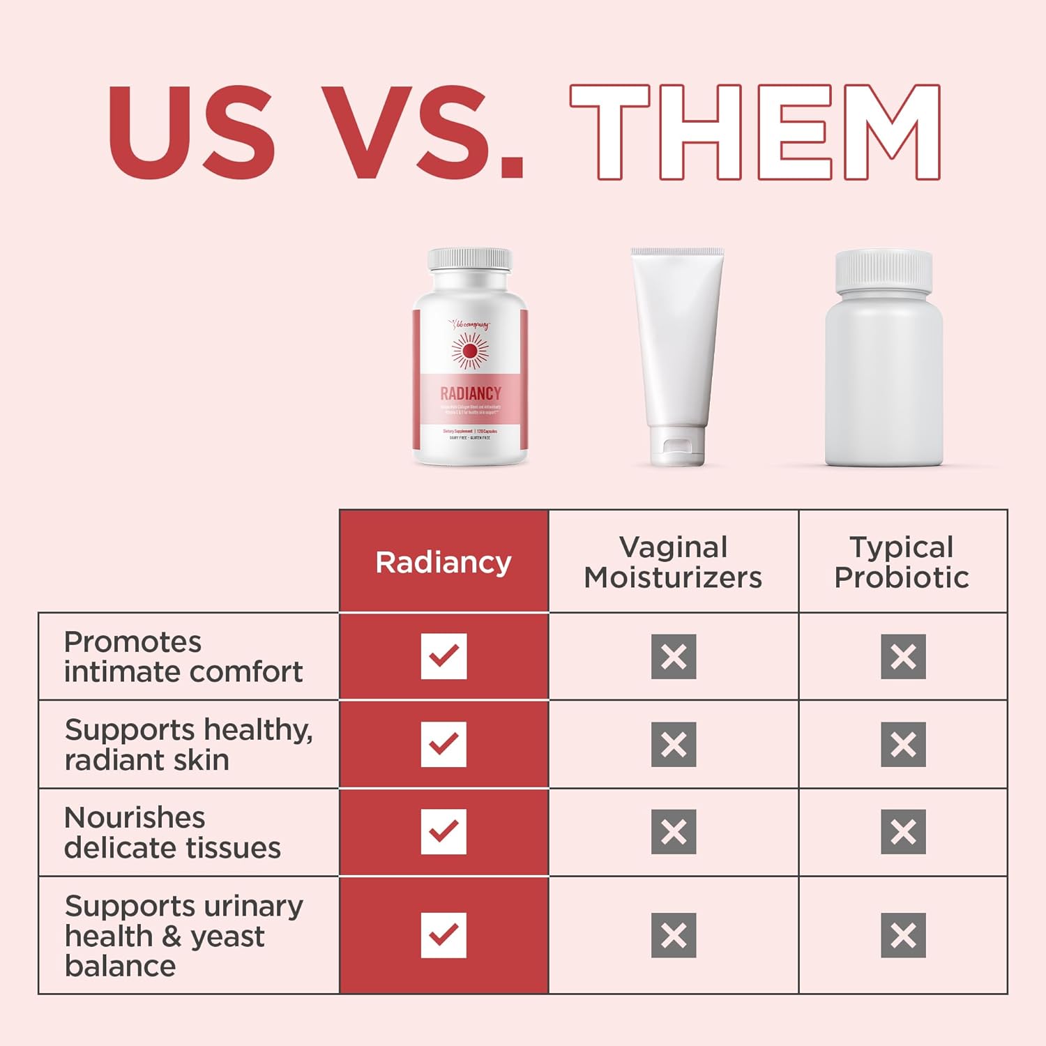 BB Company Radiancy | Vaginal Probiotics for Vaginal Dryness, pH Balance | Fights Itch, Odor | Anti-Aging | Hyaluronic Acid, Probiotics, Vitamin C, Multi Collagen | 120 Ct