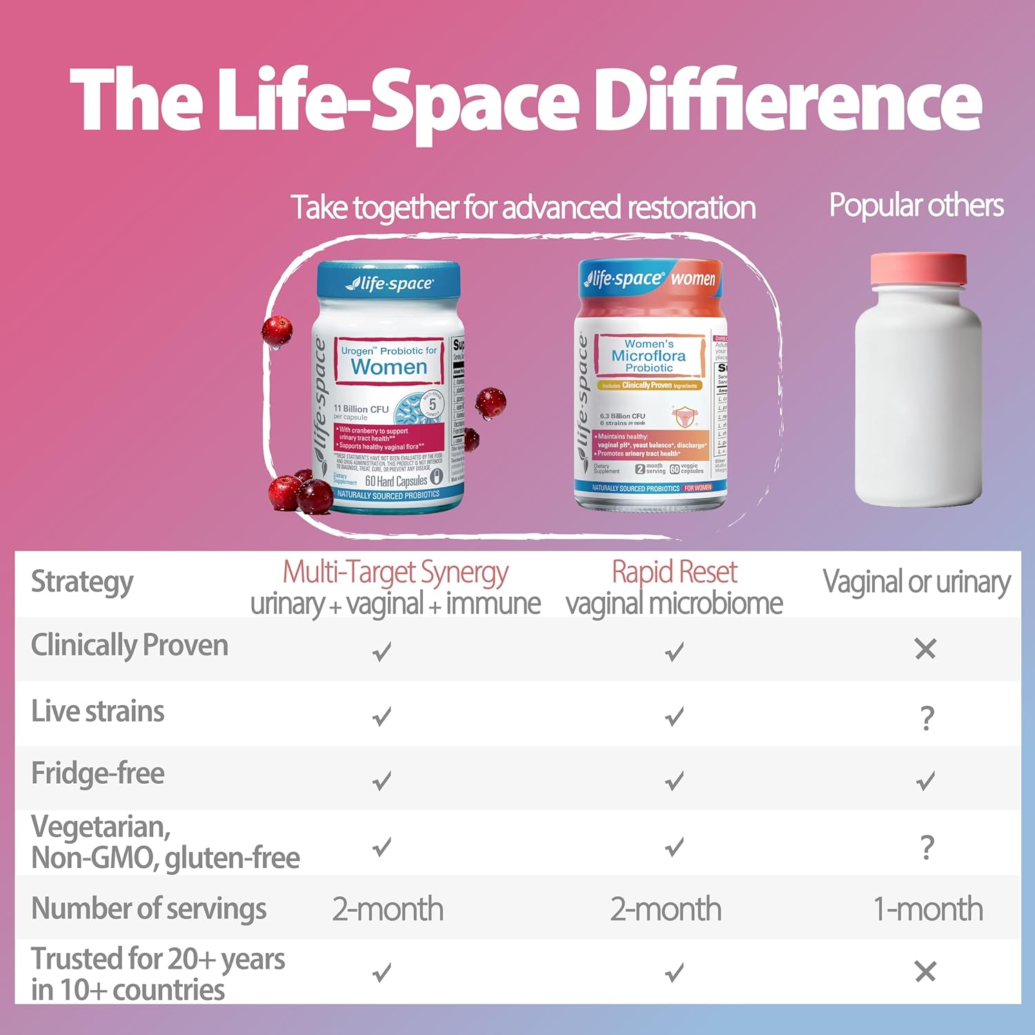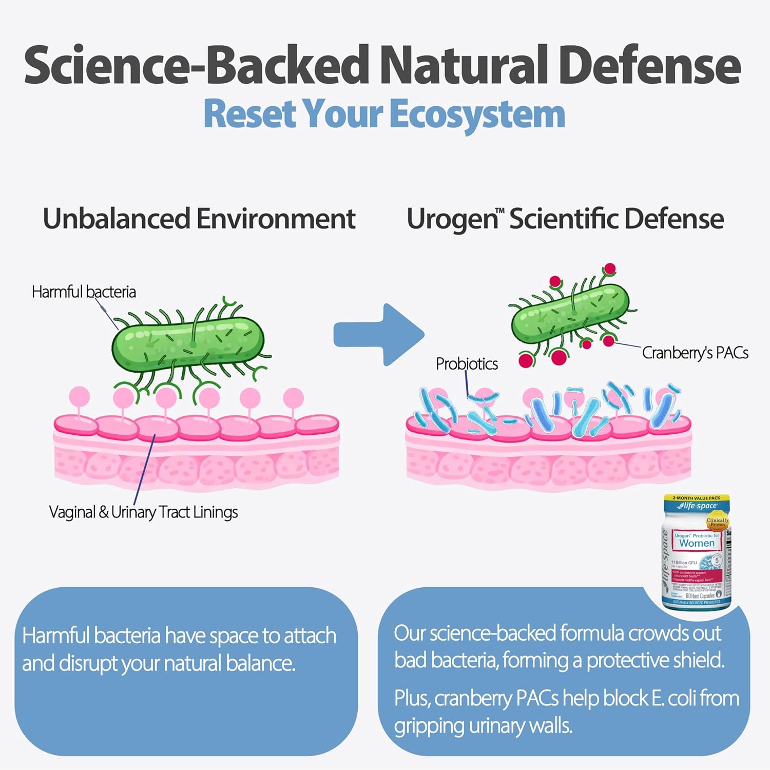 Life-Space Urogen Probiotics for Women, Probiotics+Cranberry, 2 Month Serving, Women’s Probiotic for PH Balance, Urinary Tract, Digestive & Immune Health, Lactobacillus reuteri, Non-GMO, 60 Ct