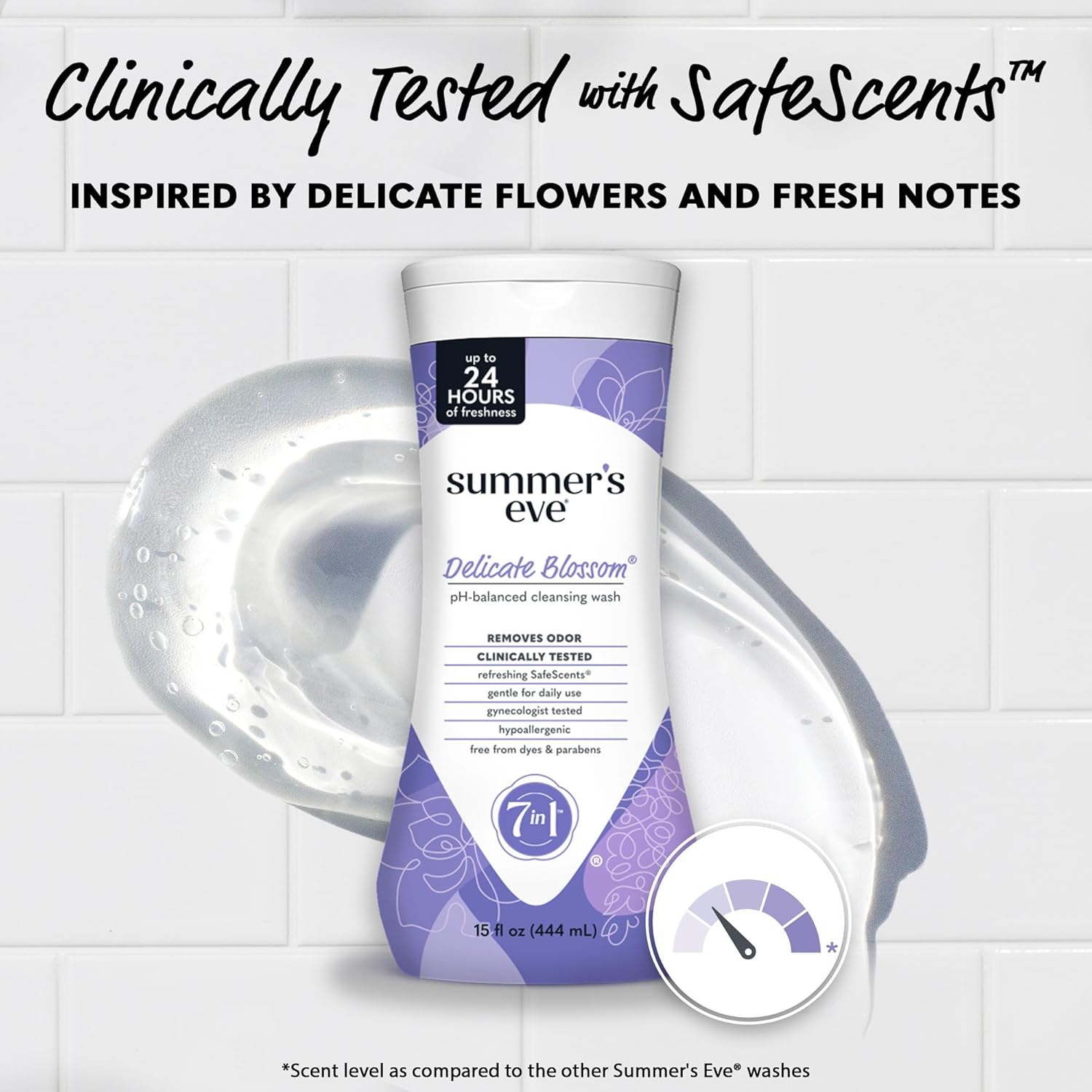 It features a SafeScent inspired by delicate flowers and fresh notes.